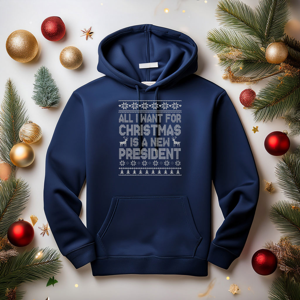 Make your holiday message loud, clear, and delightfully cheeky with the All I Want for Christmas Is a New President Sweatshirt — the perfect blend of festive humor and political sass. Designed for those who love to mix their Christmas spirit with a dose of honesty, this sweatshirt turns your seasonal outfit into a conversation starter.