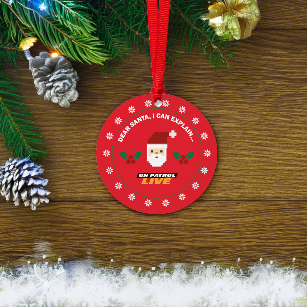 On Patrol: Live “Dear Santa, I Can Explain” Acrylic Round Red Ornament