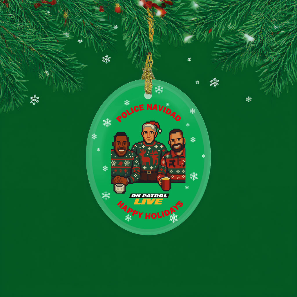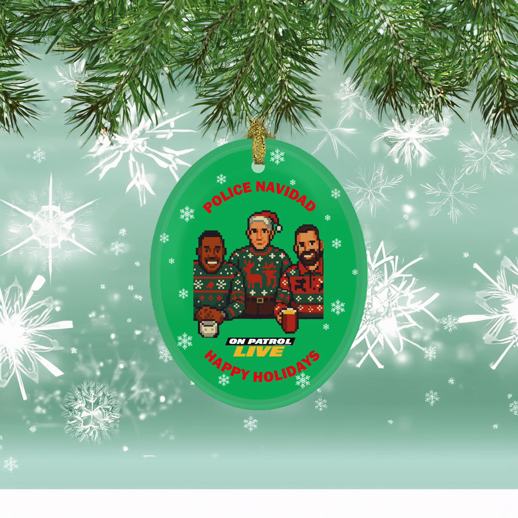 On Patrol: Live – Police Navidad with Hosts Premium Glass Oval Ornament