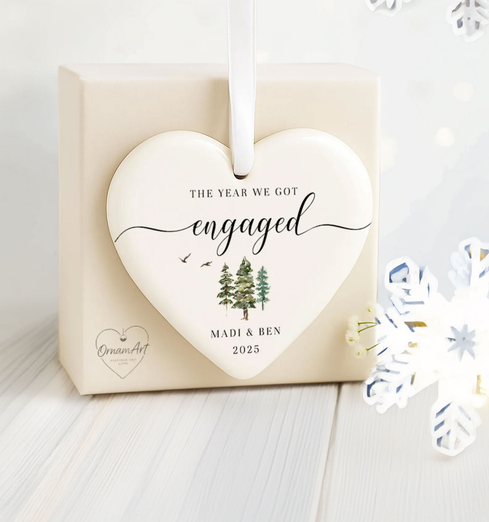 Celebrate one of life’s most unforgettable milestones with the “The Year We Got Engaged” Ornament, a timeless keepsake that beautifully marks the beginning of your forever. Perfect for newly engaged couples, this ornament captures the love, excitement, and joy of the year you said “Yes!” — turning that special moment into a holiday memory you’ll cherish for years to come.